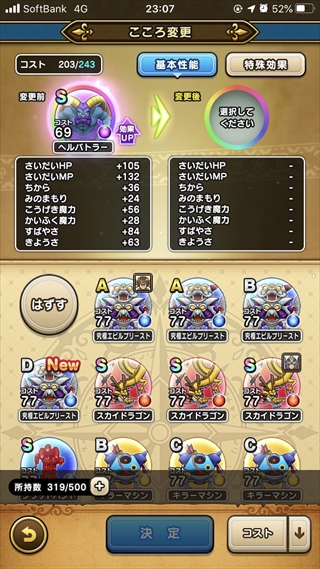 今日ヘルバトラーS3つ。今日ヘルバトラーのこころ落としすぎる気がする。ギガデーモンは全く拾えない・・・
